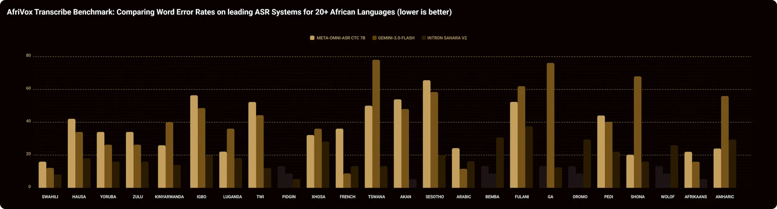 AfriVox Transcribe Benchmark Highlights: